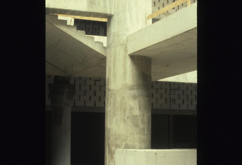 Procurou-se de um ponto de vista de imagem não trair o plano de urbanização que sendo demasiadamente rígido nos colocou à partida um problema delicado quanto a uma intervenção mais “flexível” e porventura mais imaginativa. No entanto isto não afirma que nos tenhamos demitido da função de arquiteto quanto à modelação de uma imagem mais consentânea com os valores que têm vindo a desenvolver nos últimos 15 anos do história do mundo ocidental.